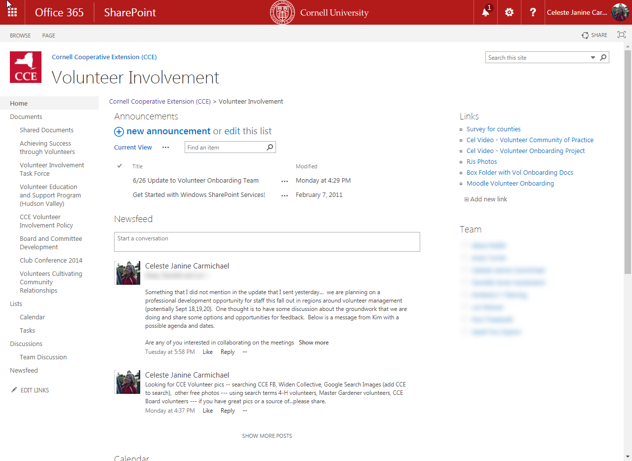 - Collaborative Teamsites – Sample site set up to intentionally share documents, provide updates, have discussions and keep a project moving forward with a larger pool of stakeholders.